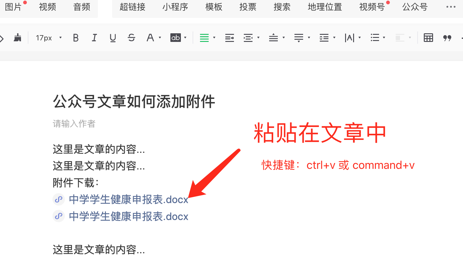 温馨提示:复制直达路径,粘贴在推文编辑器即可插入附件